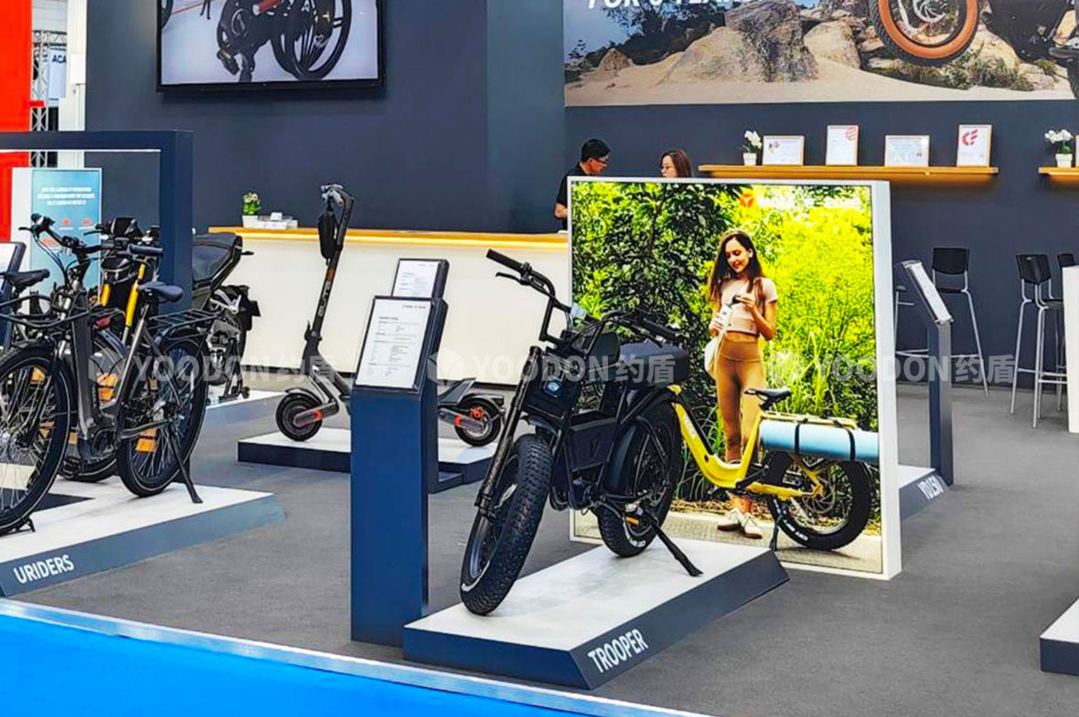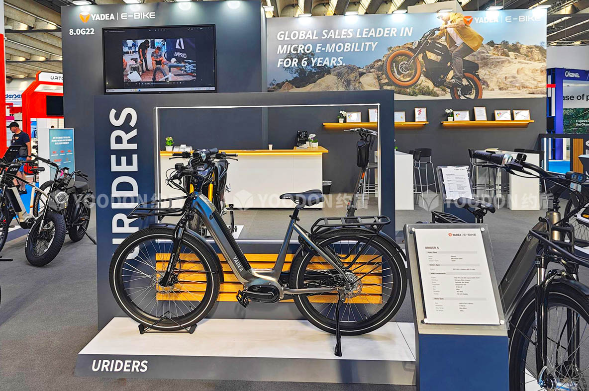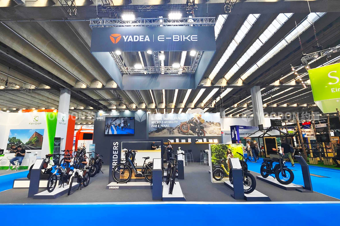 「約盾展覽」德國展會搭建-雅迪簡約時尚國際范|亮相2023德國法蘭克福EUROBIKE展!